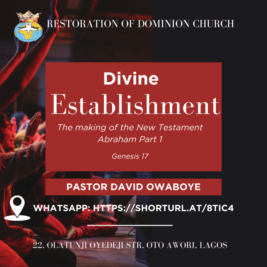 Text: Genesis 17; John 10:10 “Divine” refers to something beyond human explanation—what is miraculous, supernatural, and orchestrated by God. “Establishment” speaks of being fixed, stable, unalterable, and permanently secured by God. The Covenant of Abraham is fundamentally a covenant of greatness. It positions a person to be the head and not the tail, above only …
